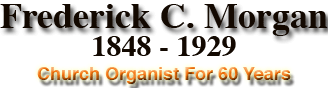 At 10 o'clock in the morning on July the 4th, 1929 Frederick Chapman Morgan died at his home on Ohio Street. He was eighty-one years, one month, and nine days old. Just down the street and around the corner next to the Vermilion Township Hall on Division Street was the First Congregational Church. Mr. Morgan had played the organ in that church, and the old church building which stood on the same lot before it, for over 60 years. Before him his mother, Emma, and his father, F.W. Morgan had played a lap organ - the first church organ - in this place. She balancing both melodeon and babe on her lap while holding a hymnal in one hand and playing the soprano chords with the other.
