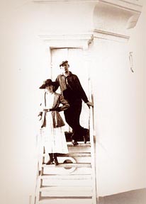 The last full-time Lightkeeper was a fellow named Joseph Wetzler. Wetzler was born and raised in Sandusky. He and his wife, Bertha, had two children. The oldest was a daughter, Kathryn (Nalley), who was later a supervisor for the Lorain Telephone Company, and a son, Fred, who was mentioned in a 5-29-03 issue of the Vermilion Photojournal - Vermilion's weekly newspaper. Joseph and Bertha are seen in this photograph on the lighthouse steps that was taken in 1919 about the same time that oil ceased to power the light. Joe then left the job and went to work for the railroad. Hard of hearing he was struck and killed by a train as he walked down the rails to a group frantically waving friends sometime in 1924.