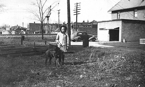 MARYANN AND HER DOG: Yet another beautiful snapshot from Major Jack Corsino of his mother, Maryann Thompson Corsino, standing behind the Vermilion News office on Grand Street back in the late 1940's.