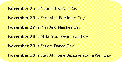 WHAT'S A FOOT: There will be no meeting of the Vermilion Area Archival Society until the 2nd Monday in January of 2007. But in the mean folks should understand that everyone is absolutely welcome to attend meetings and/or to become a member of the VAAS.