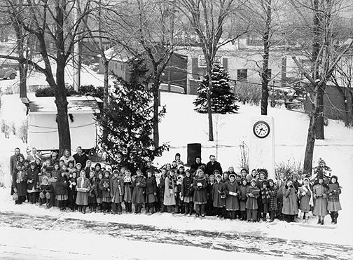 This week the movie (shot 10-24-06) depicts the crowd in Exchange/Rubberneck park waiting in front of Santa's house for a ride through town on the horse drawn wagon.