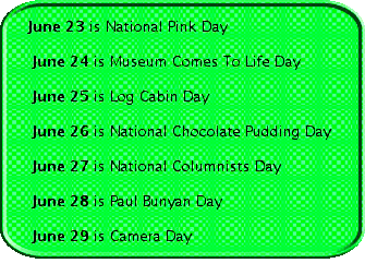 The Beat Goes On: The page is generated by the dreaded Macintosh Computer and is written and designed by (me) Rich Tarrant. It will change weekly ~ usually on Saturday. Bookmark the URL (Universal Resource Locater) and come back at your own leisure. Send the page to your friends (and enemies if you wish). If you have something to share with those who visit this page, pass it on. And if you see something that is in need of correction do the same. My sister, Nancy, is a great help in that respect. It only takes me a week to get things right. And follow the bookmarks. You might find something you like. If you experience a problem with them let me know. Also, if you want to see past editions of this eZine check the new archives links below.