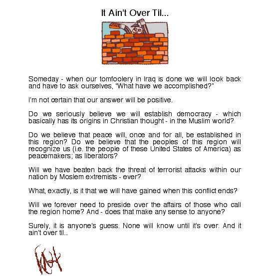 HAVE YE QUESTIONS (?): I do have another question - and I do have an answer to that question (from Bob Williams) - but I'm rather pressed for time this week so I will defer it until next time.