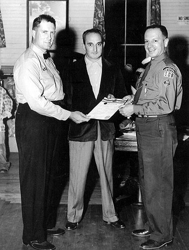 BS CHARTER: This is a Paul Ludlow photograph of well known Vermilionite George Roberts and Mr. Risdon (I believe this is Bob Risdon's father and I can't remember his first name) accepting a Boy Scout Charter [they are renewed yearly] from an unknown Boy Scout representative.