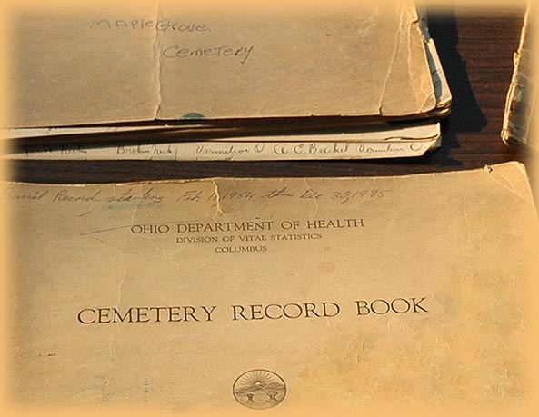 NOT YET IN THE BOOK: I couldn't resist catching this pic of some of the record books for Maple Grove Cemetery last Monday. The Vermilion Area Archival Society held its July meeting there. Mark Riddle, who has partnered with his mother in the business, told about two dozen folks attending the meeting the history of the site - plus some. I've known him since he was a boy. He's an impressive young man. His talk is featured in the weeks Vermilion Views Podcast.