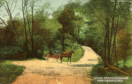The locale of the pic - as near as I can tell - is looking down the road to the southeast in the hollow. If one followed the road behing the carriage you would arrive at the aforementioned "Rosedale" before going up the hill to the south.