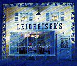 Leidheiser's: This isn't something particularly old. I just thought it to be pleasing to the eye. I doctored it some with my software because even the original - which is a postcard - has some appeal beyond mere advertising. The lights, both inside and out, were just right. They reminded me of some classical painting(s). All that is lacking are some people.