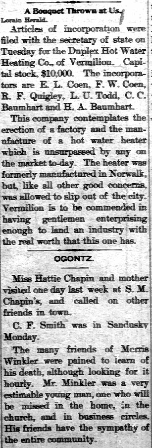 Ref: The Vermilion News-April and December 1935 and July 1938 - This article was published in the Vermilion Photojournal 12-04-2003.
