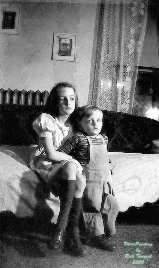 These shadows were captured in the living-room of the apartment above the Vermilion News printshop on Grand Street in Vermilion, O. c. 1947. The framed photograph on the wall behind the children is of one of their older brothers - Charles "Chuck" - when he was in the service.