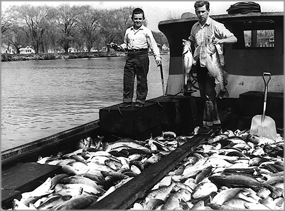 My late father-in-law, George Diener, was truly a great sport fishermen. Frequently he would tell my wife and I about a two hundred pound catfish that used to hang out and Vermillion River. And just as frequently I would bent over laughing at the thought. A 200 pound catfish indeed. It would’ve looked like a mini submarine scudding up and down the stream. Diners at the old McGarvey’s restaurant would’ve loved it. It was absurd. But now-after all these years - I’m not so sure he was jesting. For if I were, say, just 20 years old today and some aging balding guy with bifocals told me about a time when he saw fish tug in the harbor loaded to the top of its gunwales/gunnels with walleye and/or perch I know what I'd think he was full of - and it wouldn’t be fish.
