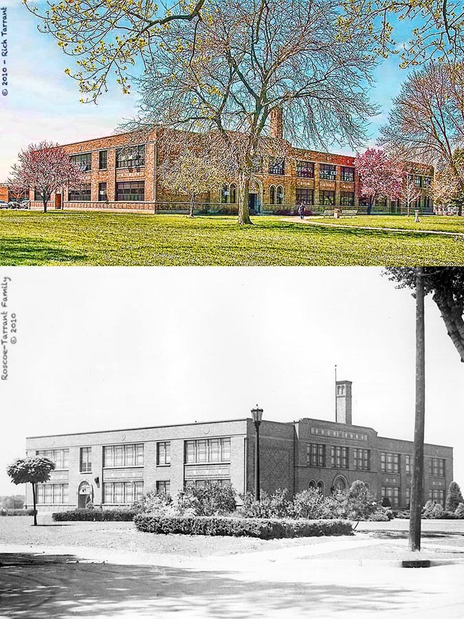 Part 4: The land was situated just to the south of the muddy lane villagers understandably called South Street. It was bordered on the east and west, respectively, by Washington and Decatur Streets, and would likely have been equally divided by Perry Street if that path had not ended at South Street. During a better part of the 19th century great oaks, so common to the territory, grew wild and mingled boughs with an occasional elm, ash, crab apple, and maple tree casting a chorus of their quiet shadows across the earth. Later the wood would be cleared and become the "Pelton Farm". In the early 1920's the Vermilion Board of Education bought the farm, and again cleared and levelled the land from South Street to the Nickel Plate Railroad tracks to the south. Here they built a new village school they would call South Street School. And here Vermilion's education system, for all intents and purposes, genuinely entered the 20th century.