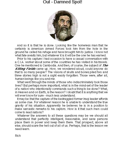 The Beat Goes On: The page is generatedby the dreaded Macintosh Computer and is written and designed by (me) Rich Tarrant. It will change weekly ~ usually on Saturday. Bookmark the URL (Universal Resource Locater) and come back at your own leisure. Send the page to your friends (and enemies if you wish). If you have something to share with those who visit this page, pass it on. And if you see something that is in need of correction do the same. My sister, Nancy, is a great help in that respect. It only takes me a week to get things right. And follow the bookmarks. You might find something you like. If you experience a problem with them let me know. Also, if you want to see past editions of this eZine let me know and I'll send them to you.