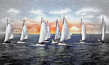 Racing on Erie: A pretty cover pic; racing on the lake. It was nice when I found it but the software just made it nicer. The colors match the event. One does not race with the wind when the weather is dead calm. The weather almost needs be harsh. If not harsh at least difficult.The original does not put this point across as effectively as one now can view it. It can be summer. It can be August. But if the wind is really blowing and the water's spraying it can be cold and miserable.