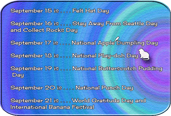 THE BEAT GOES ON: This page is generated by a dreaded Macintosh Computer and is written and designed by (me) Rich Tarrant. It will change weekly ~ usually on Saturday. Bookmark the URL (Universal Resource Locater) and come back at your own leisure. Send the page to your friends (and enemies if you wish). If you have something to share with those who visit this page, pass it on. And if you see something that is in need of correction do the same. My sister, Nancy, is a great help in that respect. It only takes me a week to get things right. And follow the links. You might find something you like. If you experience a problem with them let me know. Also, if you want to see past editions of this eZine check the new archives links below.