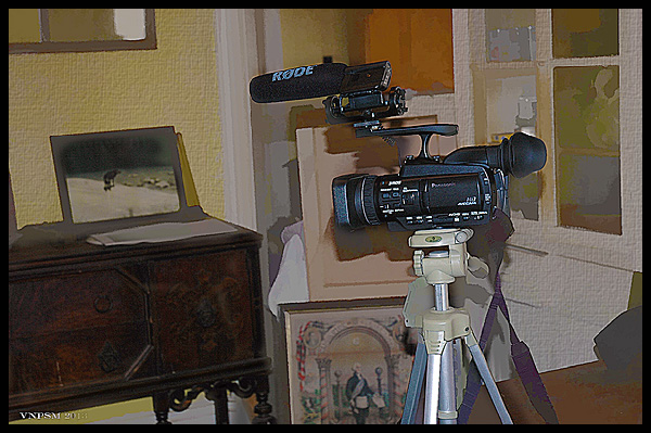 SHOPTALK: As I mentioned at the top of the desk last week the museum was awarded a grant from the Sandusky / Erie County Community Foundation for the purchase of a camcorder. It arrived Tuesday. It’s a nice piece of equipment. Below is a pic I took yesteryear of it mounted on a tripod, with an external mic attached. It’s very impressive. I shot a very short segment with it just to see how it operates. That part seems easy enough. Now bring on the interviews…