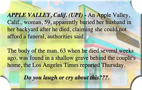 AGAIN - ANOTHER NEW (NOW OLD) THING: Initially I said that "This will not take the place of the "Macabre" stuff all the time - but will supplement whilst I search for more macabre stories to tell." But methinks that it's carved out a niche for itself and the "Macabre stuff" with have to find another.