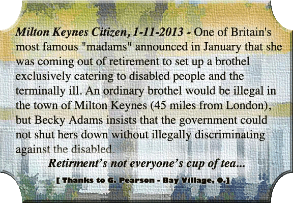AGAIN - ANOTHER NEW (NOW OLD) THING: Initially I said that "This will not take the place of the "Macabre" stuff all the time - but will supplement whilst I search for more macabre stories to tell." But methinks that it's carved out a niche for itself and the "Macabre stuff" with have to find another.