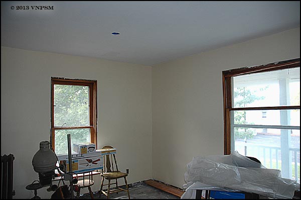 MEANWHILE: Whilst I was immersed in all this stuff downstairs at the museum, upstairs folks were working at sorting, cleaning, and painting. George Spreng painted the living room and the ceiling in the master bedroom. My sister Ginny Wilkes, and our nieces Barbie Akers and Bobbi Emery went to work sorting sundry items and cleaning. If left to me it'd never get done. Below is a quick peek at the living room after George painted. If you'd like to see more take a look at our FaceBook page.