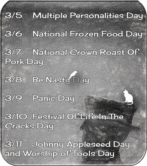 THE BEAT GOES ON: This page is generated by a dreaded Macintosh Computer and is written and designed by (me) Rich Tarrant. It will change weekly ~ usually on Saturday. Bookmark the URL (Universal Resource Locater) and come back at your own leisure. Send the page to your friends (and enemies if you wish). If you have something to share with those who visit this page, pass it on. And if you see something that is in need of correction do the same. My sister, Nancy, is a great help in that respect. It only takes me a week to get things right. And follow the links. You might find something you like. If you experience a problem with them let me know. Also, if you want to see past editions of this eZine check the new archives links below.