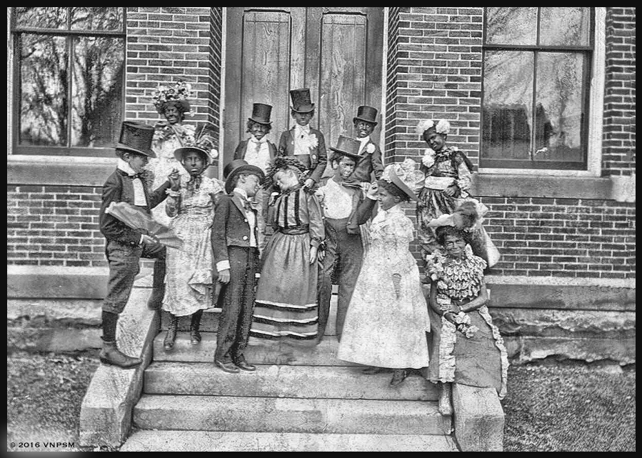 Be all that as it is, this (photograph) is the way it was - in turn of the 20th century Vermilion, Ohio, and in virtually every other community throughout the United States. These youngsters posing on the southern steps of Vermilion's Town Hall (c. 1904) were just having a good time. It may not have been "politically correct" but it is most assuredly "historically accurate".