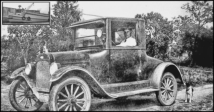 The photograph amuses me to some degree because seeing Mr. Marks behind the wheel of this vintage automobile I am reminded of his son Ed. Over the years I believe I’ve seen him driving an antique car nearly identical to this one. [Note: As near as I can tell it is a 1921 Chevrolet Utility Coupe. When new they cost about $680.]