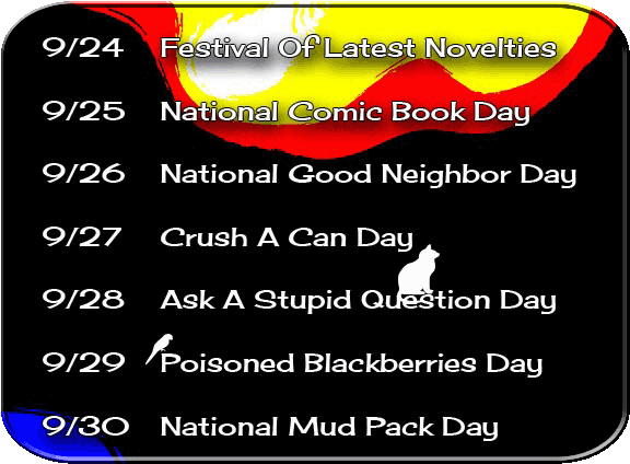 THE BEAT GOES ON: This page is generated by a dreaded Macintosh Computer and is written and designed by (me) Rich Tarrant. It will change weekly ~ usually on Saturday. Bookmark the URL (Universal Resource Locater) and come back at your own leisure. Send the page to your friends (and enemies if you wish). If you have something to share with those who visit this page, pass it on. And if you see something that is in need of correction do the same. My sister, Nancy, is a great help in that respect. It only takes me a week to get things right. And follow the links. You might find something you like. If you experience a problem with them let me know. Also, if you want to see past editions of this eZine check the new archives links below.