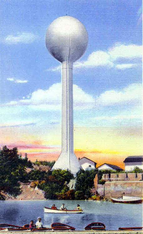What may subtly catch one's eye here is the western abutments of the old river and electric bridges. This particular pic/card most likely dates about the same time as the one in the preceding picture. On the card it remarks that it is the "new 312,000 gallon water sphere". It really is a nice picture.