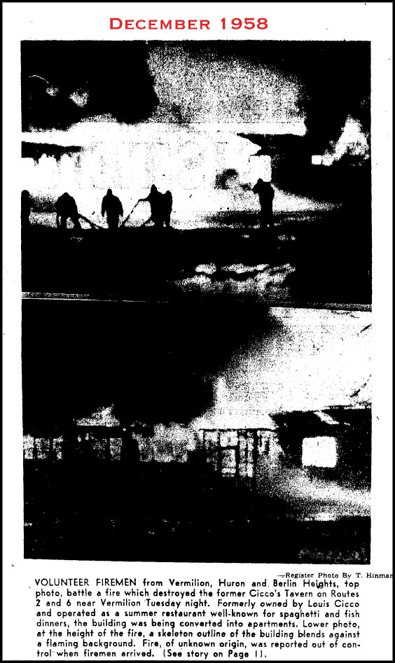 In 1956 he sold the property to a Lorain man named John Kochan. In late December of 1958 as Kochan as plumbers were in the process of repairing the heating system for residential use place went up in flames. Although volunteer firemen from Vermilion, Huron and Berlin Heights worked tirelessly to stop the fire inclement weather made the task impossible.