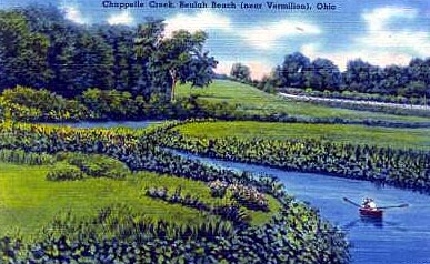 CHAPPELLE CREEK: Speaking of views this is both a pretty and a curious view of Chappelle Creek west of Vermilion. Along with Old Woman Creek near Huron this particular stream is extremely beautiful. There are few places along the lake where passers-by can get a clear uncluttered view of the - relatively undeveloped - waterway where it meets Lake Erie. Although surrounded by condominiums, a campground, and a retirement center, the creek has not been ruined. Although it doesn't resemble what one sees in this picture it nonetheless remains accessible to both the eye and a few hikers.