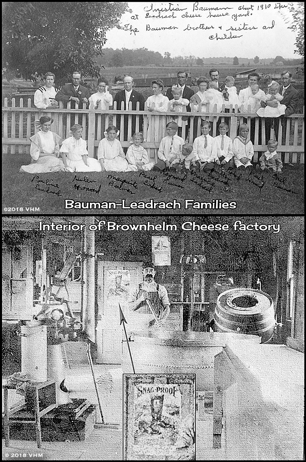 Now, several days following my email to Ruth containing the photograph she dropped by the museum with several books detailing the history of the Bauman family. I am somewhat embarrassed to admit that until that time it had not fully occurred to me that both the Bauman and Leadrach families are of Swiss descent. Their history is very interesting. [Unfortunately, I failed to make a copy of it.] But moving along; while I was always aware that there was one cheese manufacturing company near Vermilion I was surprised to discover that there were actually two.
