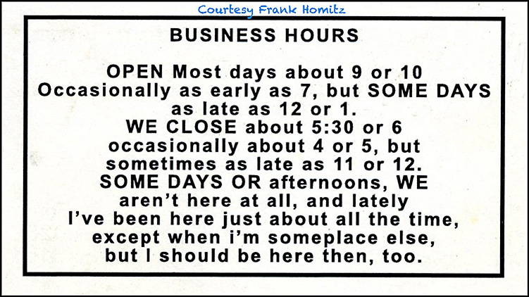 LOCAL ANNOUNCEMENTS: After giving it much thought this link has been "put-down". During the last year most of the folks who used to use this page as a bulletin board have acquired their own and, consequently, no longer need this forum from "Views". I have, however, kept links (in the links section) to Larry Hohler's "Hope Homes" in Kenya - and to Bette Lou Higgins' Eden Valley Enterprises sites. They are historically and socially relevant projects. I suggest that you visit these sites on a regular basis to see "what's shakin'".