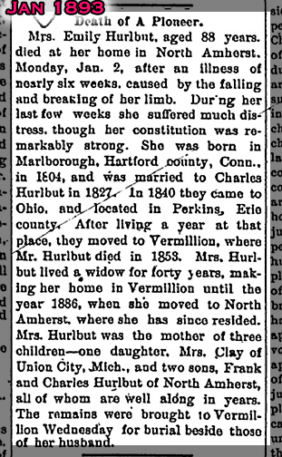 Among those who attended the funeral were Mr. Mrs. Gust Leimbach, of Huron; Peter Leimbach, Mrs. George Holl, Mrs. Wagner, A. H. Leimbach and Mrs. H. T. Baxtine of Vermilion.