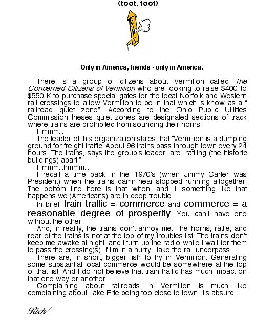 The Beat Goes On: The page is generated by the dreaded Macintosh Computer and is written and designed by (me) Rich Tarrant. It will change weekly ~ usually on Saturday. Bookmark the URL (Universal Resource Locater) and come back at your own leisure. Send the page to your friends (and enemies if you wish). If you have something to share with those who visit this page, pass it on. And if you see something that is in need of correction do the same. My sister, Nancy, is a great help in that respect. It only takes me a week to get things right. And follow the bookmarks. You might find something you like. If you experience a problem with them let me know. Also, if you want to see past editions of this eZine let me know and I'll send them to you.