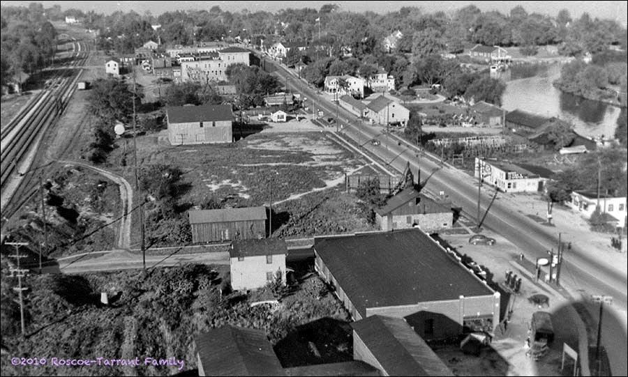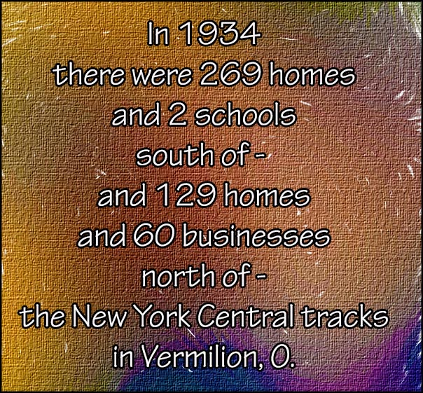 A TOWERING VIEW: It appeared to be a fine summer morning, probably just before W.W.II (c.1940), when some audacious soul climbed the Vermilion water tower, looked westward over the village, and took this photograph. While it is certainly part of the P. Roscoe/Vermilion News file photograph collection the specific identity of the valiant Wight who scaled the tower to capture these shadows is unknown to me.