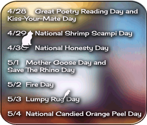 THE BEAT GOES ON: This page is generated by a dreaded Macintosh Computer and is written and designed by (me) Rich Tarrant. It will change weekly ~ usually on Saturday. Bookmark the URL (Universal Resource Locater) and come back at your own leisure. Send the page to your friends (and enemies if you wish). If you have something to share with those who visit this page, pass it on. And if you see something that is in need of correction do the same. My sister, Nancy, is a great help in that respect. It only takes me a week to get things right. And follow the links. You might find something you like. If you experience a problem with them let me know. Also, if you want to see past editions of this eZine check the new archives links below.