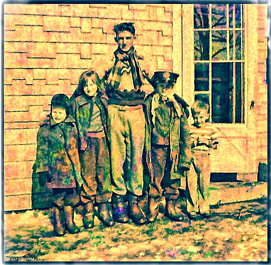 The adult in the pic is Milton Karchin who, at the time, was a Vermilion Postman. My sister “Butch” / Zella got the privilege of wearing his hat. My sister Ellie was on the other side of Milt. The little guy on the right was Billy Thompson. At the time Billy lived upstairs in the apartment over the shop. That’s why he isn’t wearing a coat. He must’ve stepped outside just for this pic. I’m the kid on the left all bundled up.