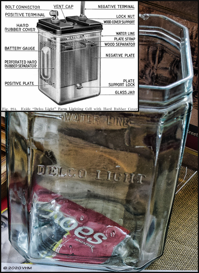 DELCO BATTERY CONTAINER: My sister, Ginny, and her husband Dave Wilkes are preparing to move to another residence. As a result, they are down-sizing. [O-happy Day.] Both have collected antiques for a number of years and pictured is one of those items.