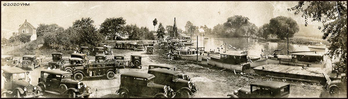 NICE SHOT: Another wide angle pic from my grandfather. Taken from the roof of the old water treatment plant on Main street we are witness to a regatta scene from about the year 1919. There is a good deal ot see. The fire engine in the pic is very likely the first motorized machine in the Vermilion department.