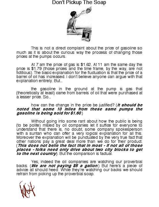 The Beat Goes On: The page is generated by the dreaded Macintosh Computer and is written and designed by (me) Rich Tarrant. It will change weekly ~ usually on Saturday. Bookmark the URL (Universal Resource Locater) and come back at your own leisure. Send the page to your friends (and enemies if you wish). If you have something to share with those who visit this page, pass it on. And if you see something that is in need of correction do the same. My sister, Nancy, is a great help in that respect. It only takes me a week to get things right. And follow the bookmarks. You might find something you like. If you experience a problem with them let me know. Also, if you want to see past editions of this eZine check the new archives links below.